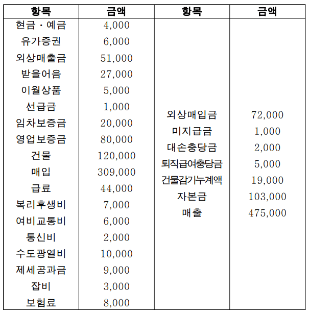 기말 상품재고액 : 6,000,000 / 급료미지급액 : 4,000,000